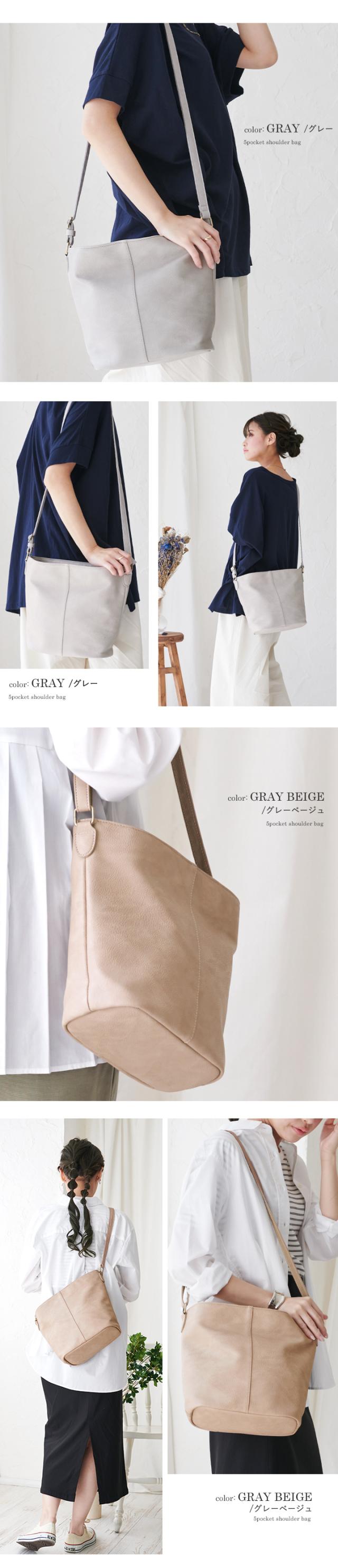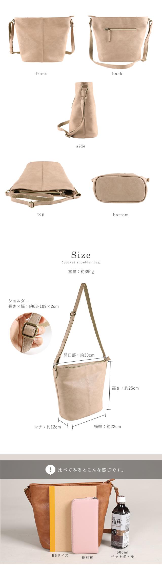 ショルダーバッグ レディース バケツ型 フェイクレザー 合皮 B5収納 斜め掛け 柔らか 軽い 軽量 ファスナー付き ナチュラル ビンテージ シンプル おしゃれ マチ広 Mサイズ お出掛け LIZDAYS リズデイズ【lz-70410】
