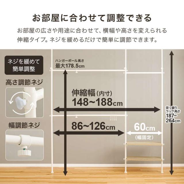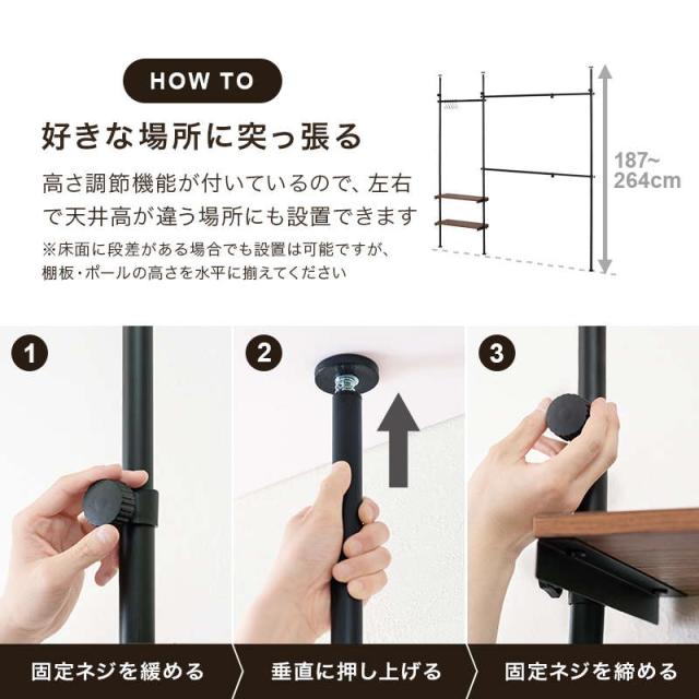 突っ張りハンガーラック 突っ張り棚 つっぱり棒 幅高さ伸縮式 突っ張り棒 間仕切り 高さ187?264cm対応