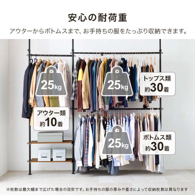 耐荷重も各部ポール耐荷重25kgの頑丈設計で沢山の服を掛けることができます。
