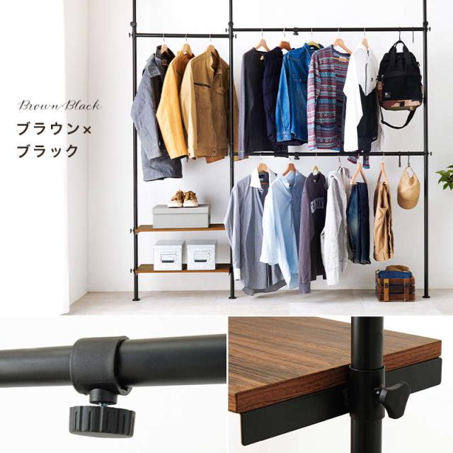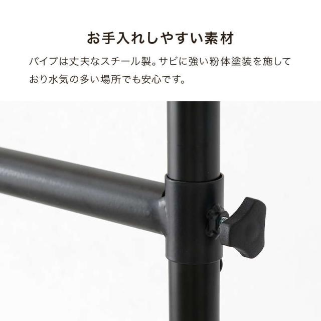 幅やポールの高さが変えられるのでコート等のアウターからボトムスまで大容量の収納力。