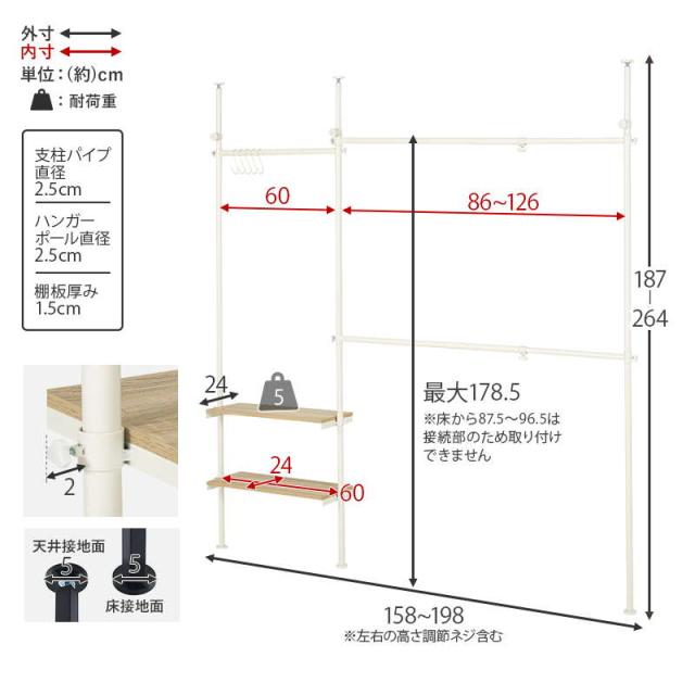 サイズ(約):幅158〜198×奥行24×高さ187〜264cm