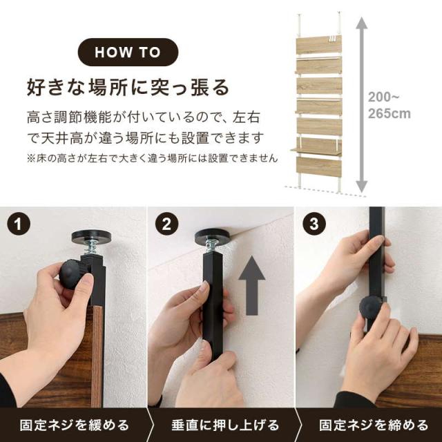 突っ張りラック マガジンラック 突っ張り棚 つっぱり棒 幅60cm 間仕切り 高さ200?265cm対応