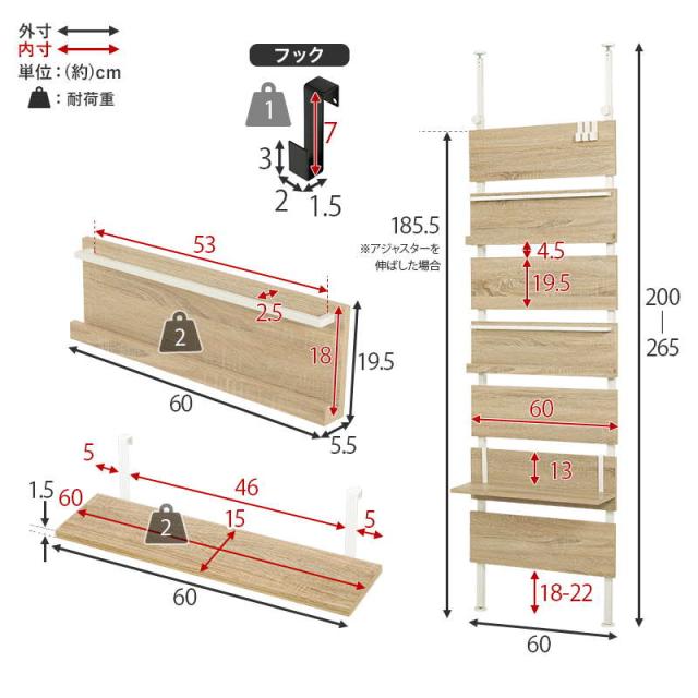 サイズ(約):幅60×奥行21.5×高さ200〜265cm