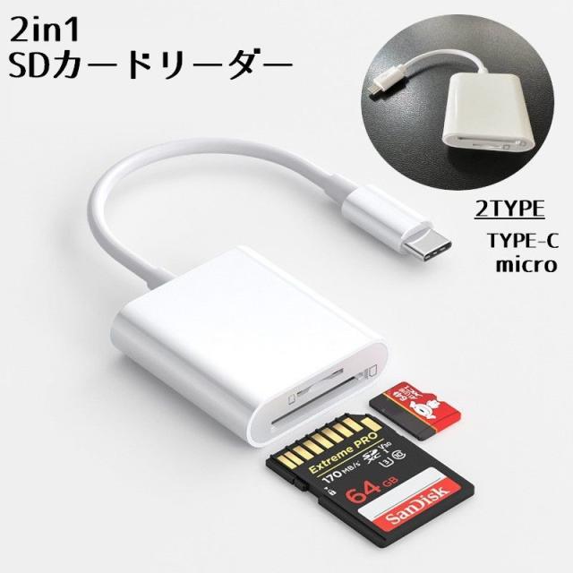 カードリーダー スマホ 外付け 変換アダプター TYPE-C micro SDカード メモリーカード 写真 移動 動画 シンプル