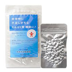非常時は、タンパク質不足になりがちです。「サカナのちから」の主原料は、かまぼこと同じ魚のすり身を酵素分解した魚肉ペプチド。全て天然の素材を使い、化学物質は一切含まれていません。お子様からご年配の方まで、どなたでも安心してご利用いただけます。