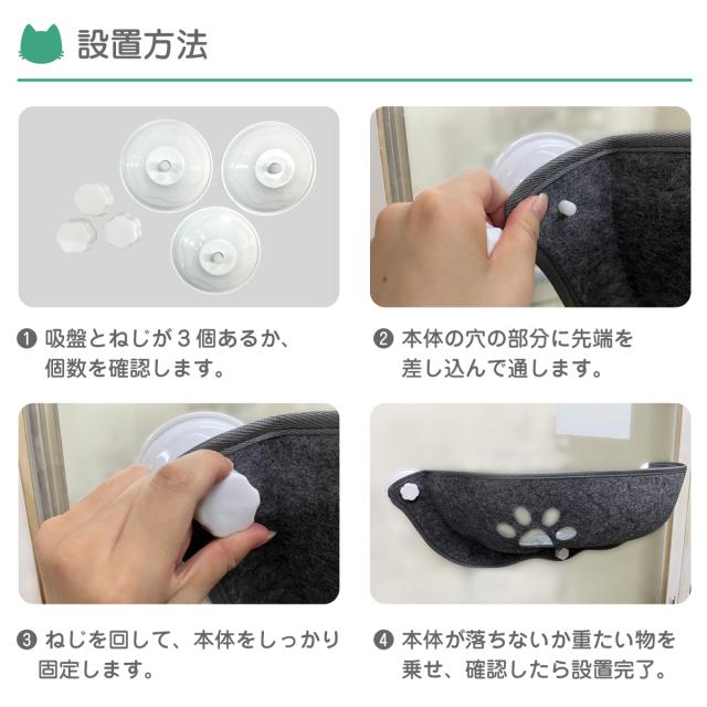 窓に吸盤をしっかり貼り付けるだけで、簡単設置できます。