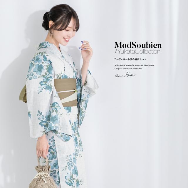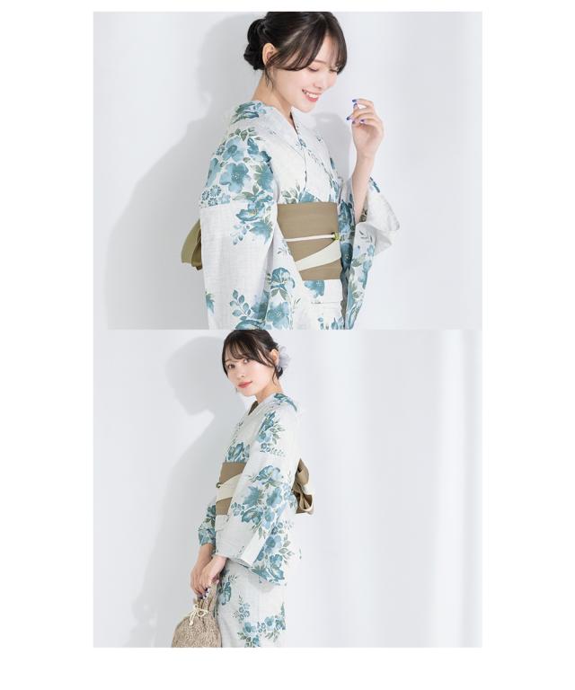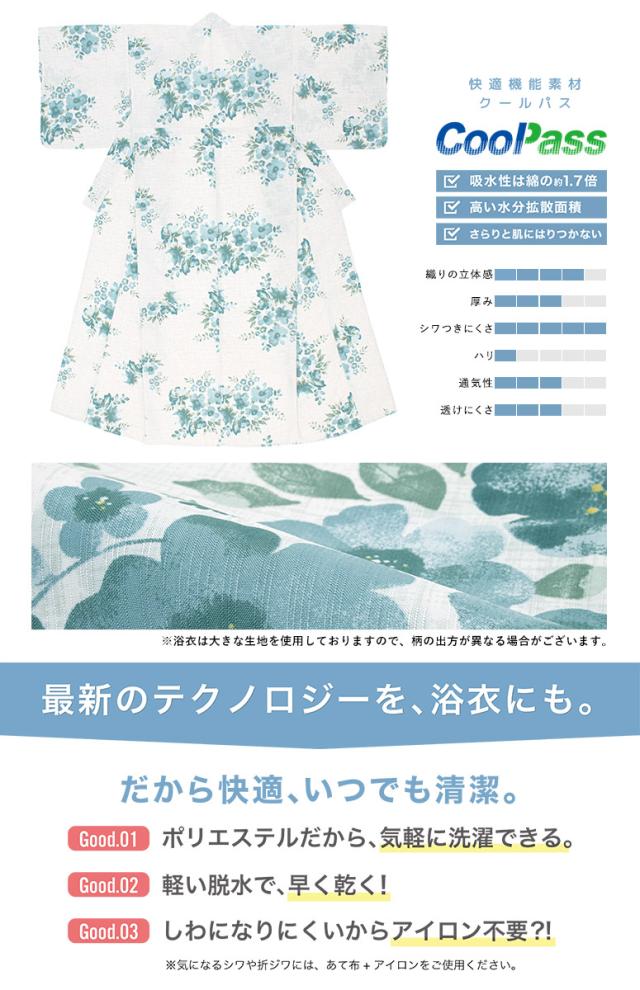 浴衣 セット レディース 浴衣セット 半幅帯 2023新作 SOUBIENオリジナル 大人 3点セット 吸水速乾 CoolPass ライトグレー系 灰色 ブルー グリーン 青 緑 花柄 ベージュ 送料無料