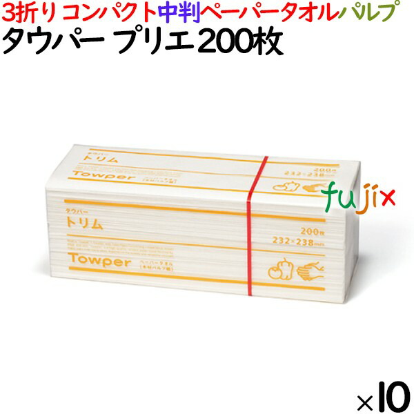 タウパー トリム ペーパータオル 232×238mm 200枚/パック×10パック/ケース 50053 パルプ