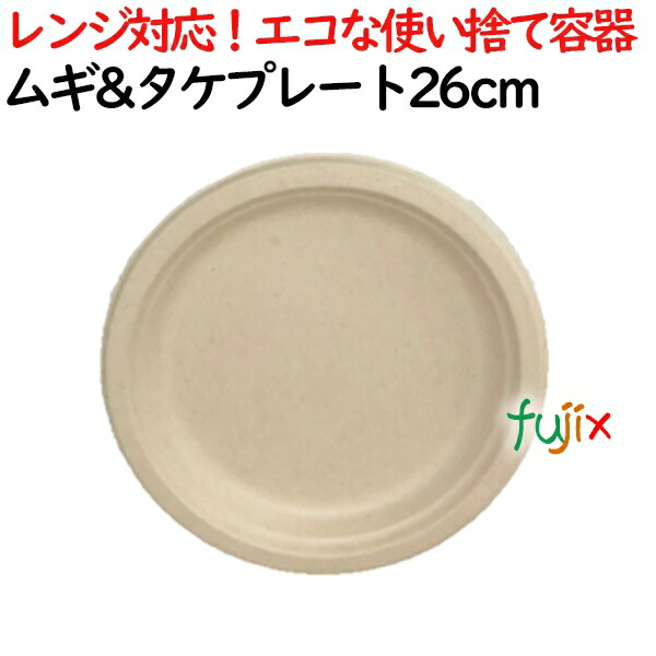 ムギ&タケプレート 26cm 800枚(50×16)/ケース 使い捨て紙皿