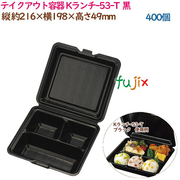 テイクアウト容器 耐熱PSP低発砲ランチボックス Kランチ-53-T ブラック 400個(25個×16袋)/ケース 業務用 14161(61673)