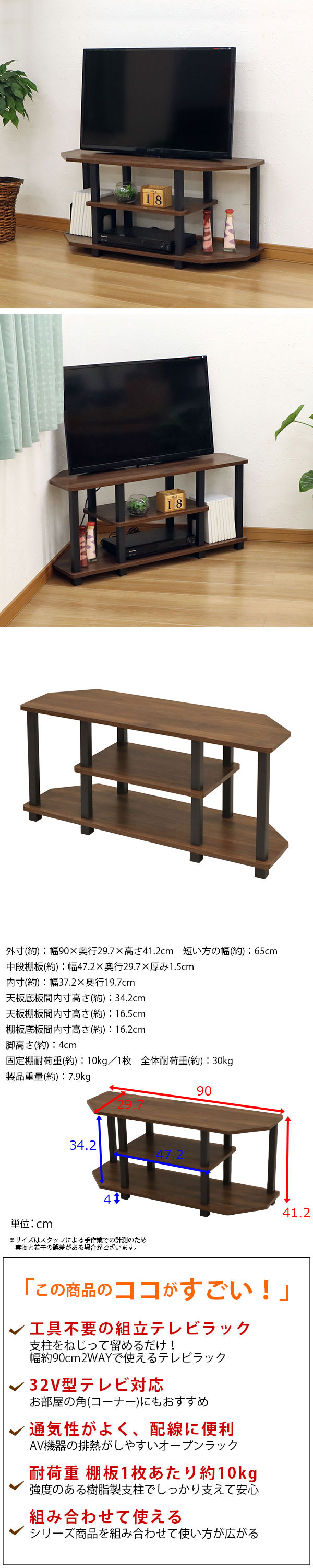 テレビ台 ローボード コーナー対応 32インチ対応 幅90cm 奥行30cm(29.7cm) 高さ41.2cm TV台 テレビラック TVラック おしゃれ 工具不要 簡単組立 軽い 軽量 収納 多い 一人暮らし 子ども部屋 オープンラック ゲーム機対応 32V型 32型 ブラウン ブラック お洒落 テレビボード