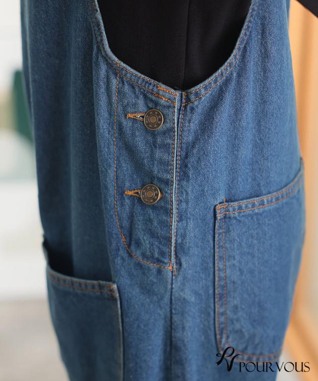 フロントダブルポケットデニムサロペット【780231726】20代・30代・40代・50代ボトムス・レディース・カジュアル・ロング・ミモレ丈・膝丈・ウエスト・ゆったり・コーデ・フレア・シンプル・タイト・台形・薄手・厚手・無地・刺繍・花柄・可愛い・キレイめ・着やせ・新作・レース・上品・セットアップ・体型カバー・スタイルアップ・小さいサイズ・3Lや4L・・即日発送・送料無料・オフィス・ワーク・オールシーズン・デイリー・普段着・オケージョン・セミフォーマル・婚活・顔合わせ・同窓会・お呼ばれ・食事会・謝恩会・親族・七五三・お宮参り・冠婚葬祭・弔事・女子会・デート・入学式・卒業式・入園式・ママ
