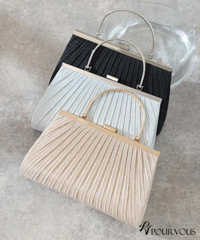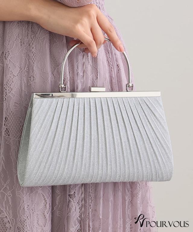 ラメプリーツハンドバッグ【735231522】10代・20代・30代・40代・50代ドレスワンピ・服装・ワンピース・フォーマルワンピ・ドレスカジュアル・ブランド・長袖・七分袖・袖あり・ドルマンスリーブ・ミモレ丈・無地・脚長効果・ハイウエスト・着やせ・体型カバー・フレア・レース・タックデザイン・ネイビー・ベージュ・グリーン・小さいサイズ・3Lや13L・かっこいい、かわいい・即日発送・送料無料・・結婚式・婚活・披露宴・顔合わせ・発表会・演奏会・二次会・同窓会・お呼ばれ・食事会・謝恩会・親族・七五三・お宮参り・冠婚葬祭・弔事・女子会・韓国・デート・入学式・卒業式・入園式・卒園式・ママ・ピアノ・マタニティー・セレモニー・セレブ・パーティー