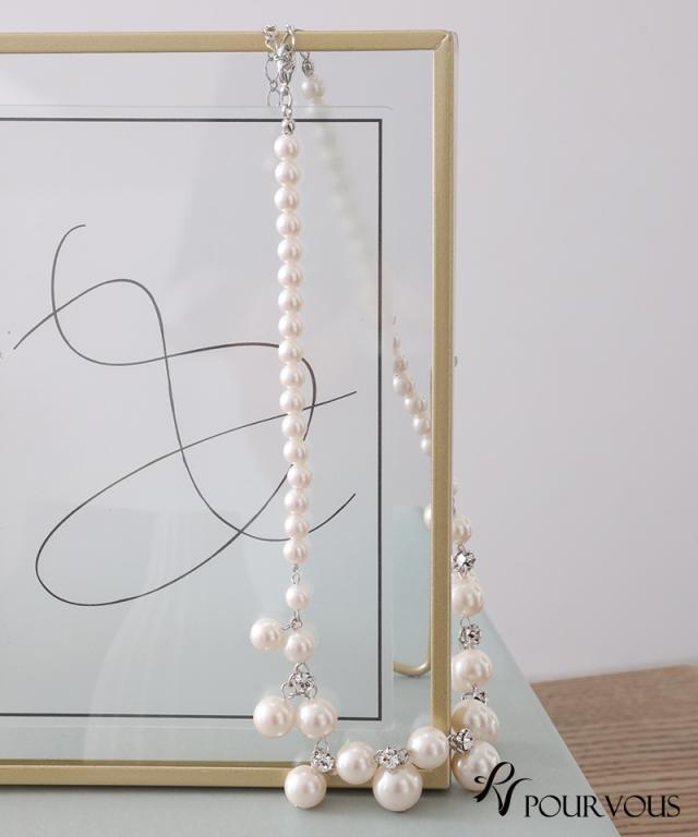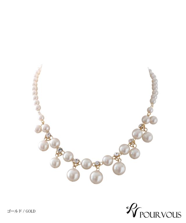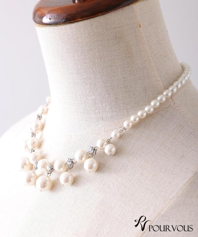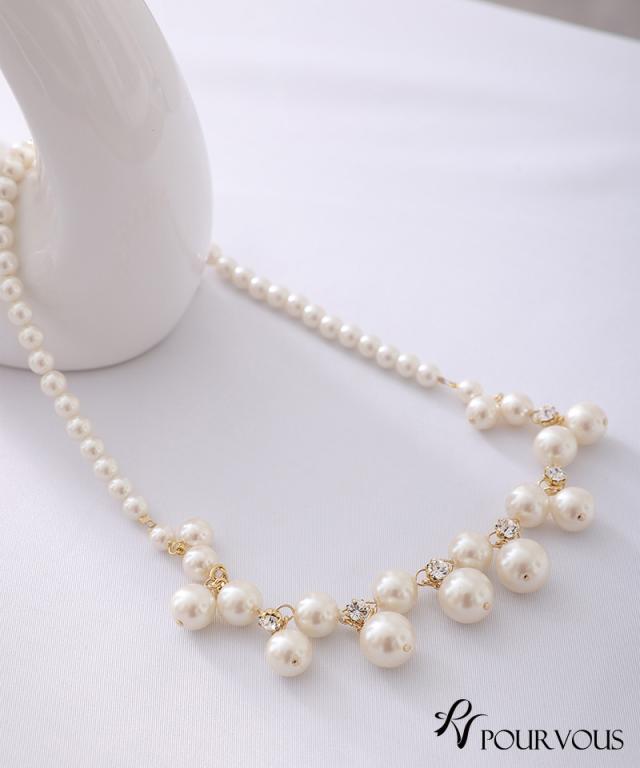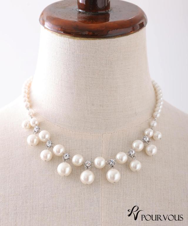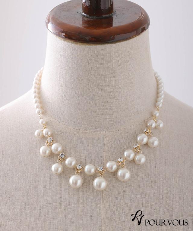 大きめパールと小粒パール、ビジューが贅沢にあしらわれたネックレスです。