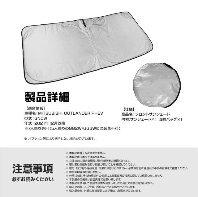 アウトランダー PHEV GN0W 7人乗り用 フロント サンシェード フロントガラス 車種専用 カーテン シェード 遮光 日除け 車中泊 アウトドア キャンプ 紫外線 UVカット エアコン 燃費向上 断熱 春 夏 秋 冬 折りたたみ 熱中症 保温 コンパクト