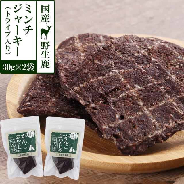 犬 猫 おやつ 無添加 国産 がんこおやじのおやつ亭 国産野生鹿ミンチジャーキー トライプ入り 30g×2袋セット 追跡可能メール便のみ送料無料(同梱不可)