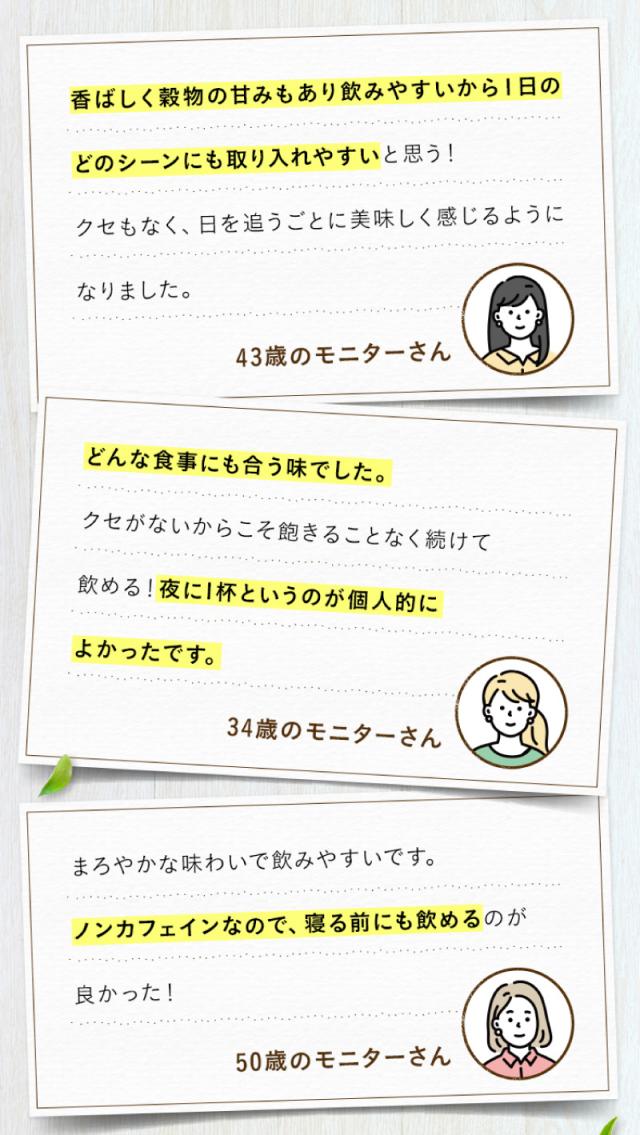 原材料:大麦(カナダ)、黒豆[大豆](アメリカ)、キャンドルブッシュ(インドネシア)、とうもろこし(中国)、はぶ茶(インド)、はと麦(タイ)、ごぼう(国産)、植物性乳酸菌(国内製造)、デキストリン