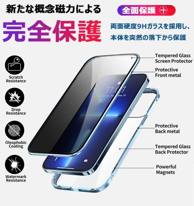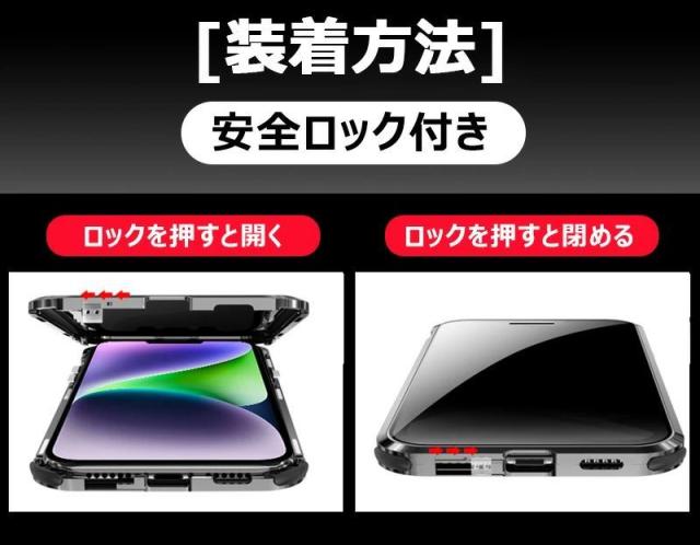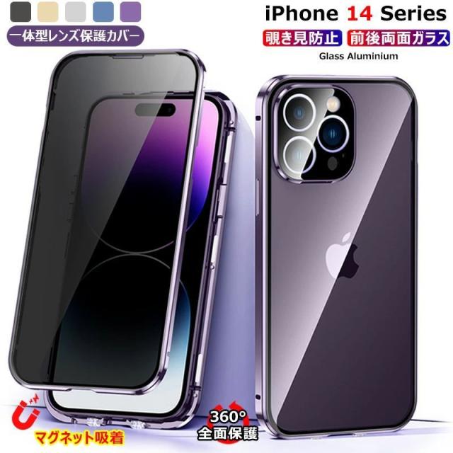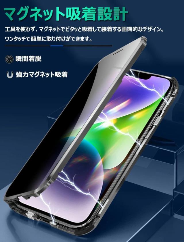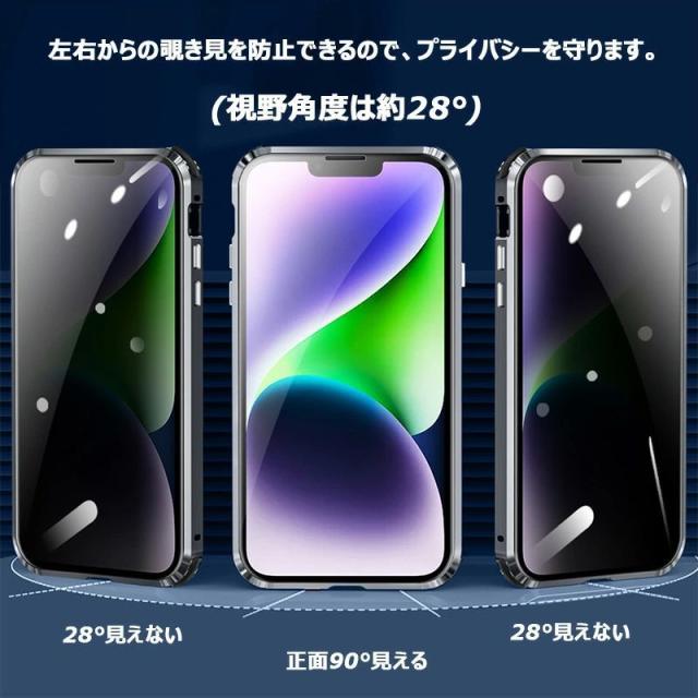 覗き見防止 + 双面9H強化ガラス + 一体型レンズ保護カバー iphone 15proケース iphone 15 pro max ケース iphone 14proケース 覗き見防止フィルム クリア iphone 14ケース iphone 14promax ケース iphone 14plus ケース アイフォン 14 カバー スマホケース iphone 14 携帯ケース iphone13 pro ケース iphone12 pro max ケース アルミ バンパー 合金 液晶保護 クリア両面ガラス 前後ガラス 360°全面保護