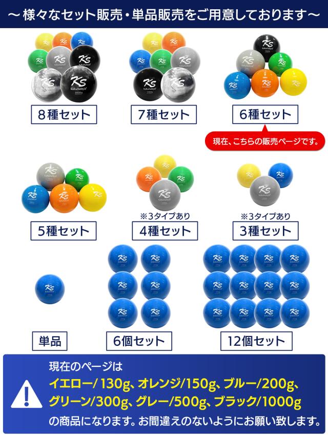 野球 トレーニング ボール ウエイトボール 130g 150g 200g 300g 500g 1000g 6種セット 球速アップ 練習 プアボール サンドボール 重い ボール ソフトボール