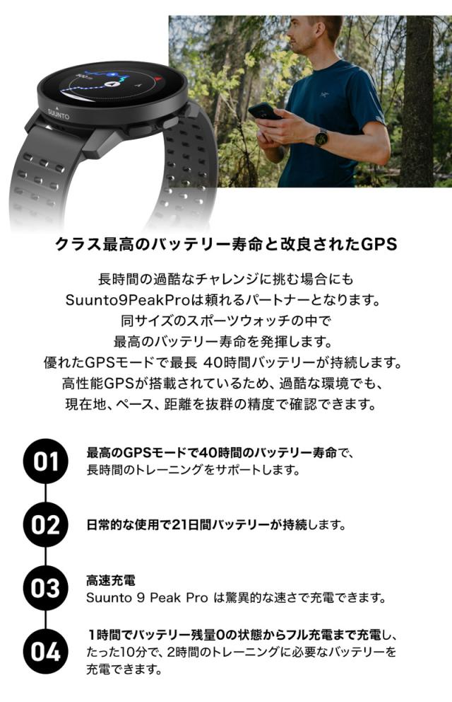 ■付属品:Suunto 9 Peak Pro、充電ケーブル、ユーザーマニュアル