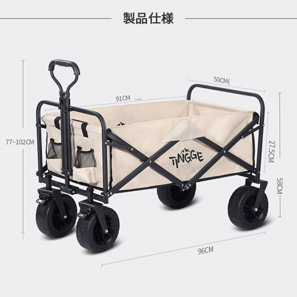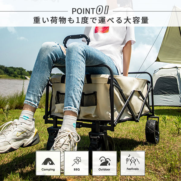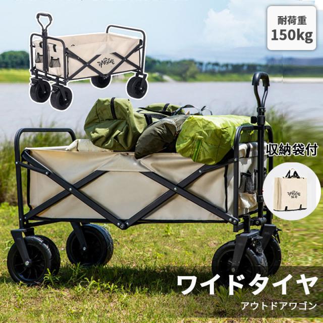 キャリーワゴン キャリーカート 収納カゴ付き 折りたたみ 大型タイヤ 耐荷重150kg 大容量150L アウトドアワゴン キャンプワゴン 台車 釣り