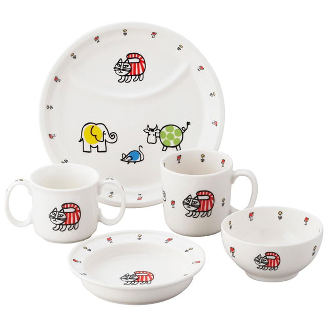 かわいいマイキーとその仲間たちの優しいイラストでお食事もすすみます。初めて手にする磁器食器はお子様の心も育みます。