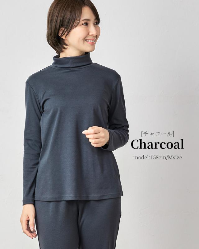 長袖 ハイネック モックネック タートルネック インナー 春 夏 秋 冬 部屋着 グレー モカ 黒