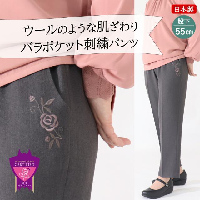 シニアファッション 春服 レディース 刺繍パンツ 服 おしゃれ 柔らか ゴム 日本製 送料無料 おすすめ 【品番9535】70代 80代 敬老の日 婦人 おばあちゃん 春 秋 母 プレゼント 母の日 高齢者 上品 気品 大人可愛い ズボン 股下55cm