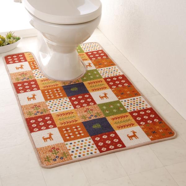 トイレマット カントリーギャッベ ロング 60×100 耳長タイプ タフト織 滑りにくい加工 北欧調 カントリー タイル