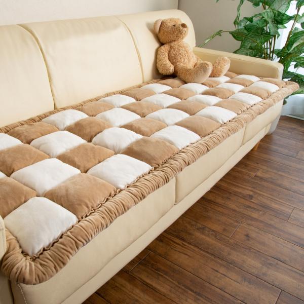 ぽこぽこソファパッド 市松 ベージュ グレー 3人掛用 約50×150cm 短毛起毛 手詰め 大人気 シンプル ソファーカバー