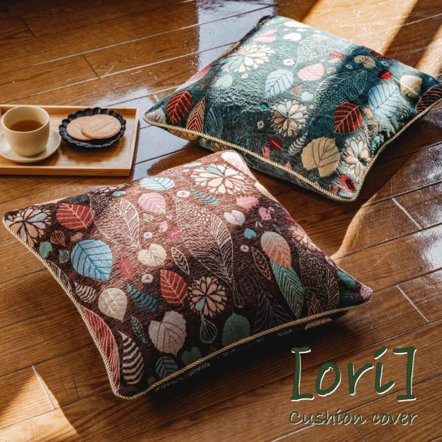 【ori】クッションカバー リーフ柄 ジャガード織 先染め 短毛起毛 高級感 両面柄 カラフル おしゃれ 2カラー