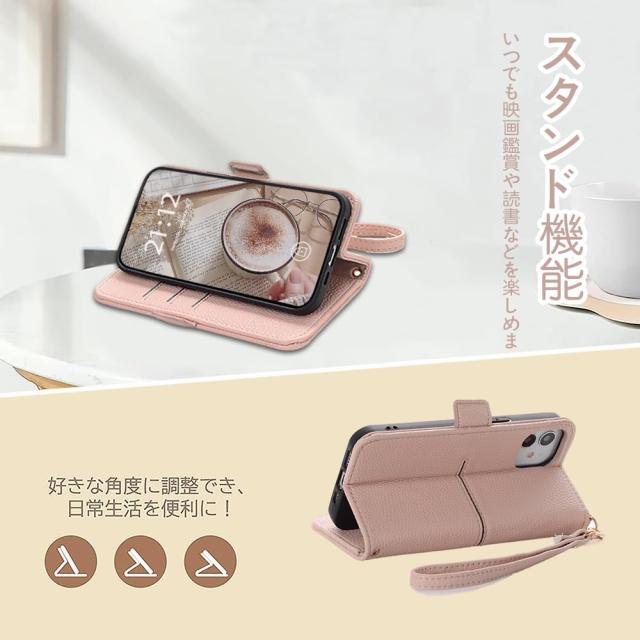 ケース 手帳型、内側に実用性のカード入れポケット×3、内側ポケット×1、カード類、現金、名刺、免許証入れなどを収納でき、通勤も通学にも活用できるタイプです。水平ブラケット機能が付いており、好きな角度に合わせて動画を見たり読んだりして、両手が解放できます。