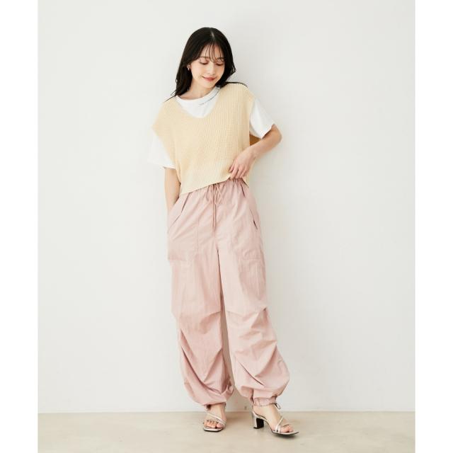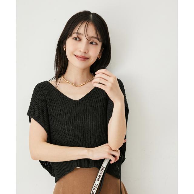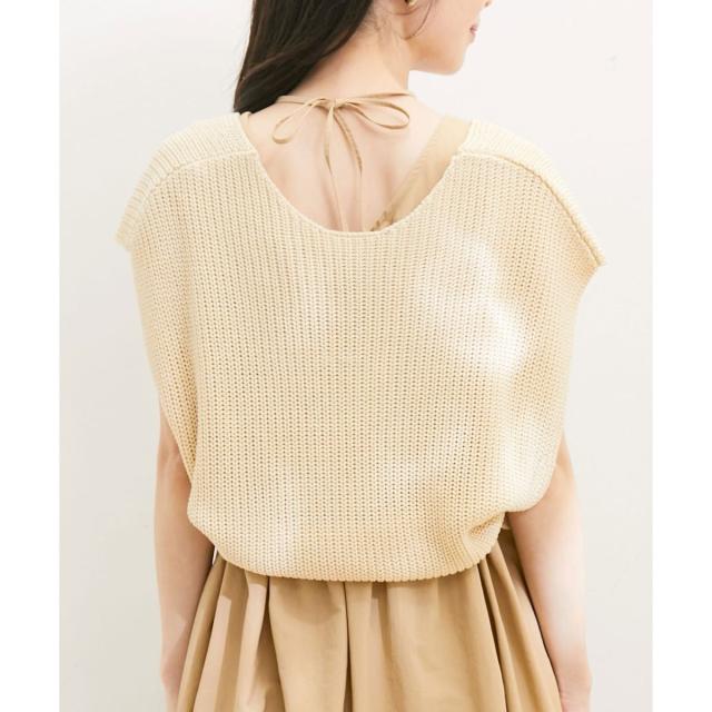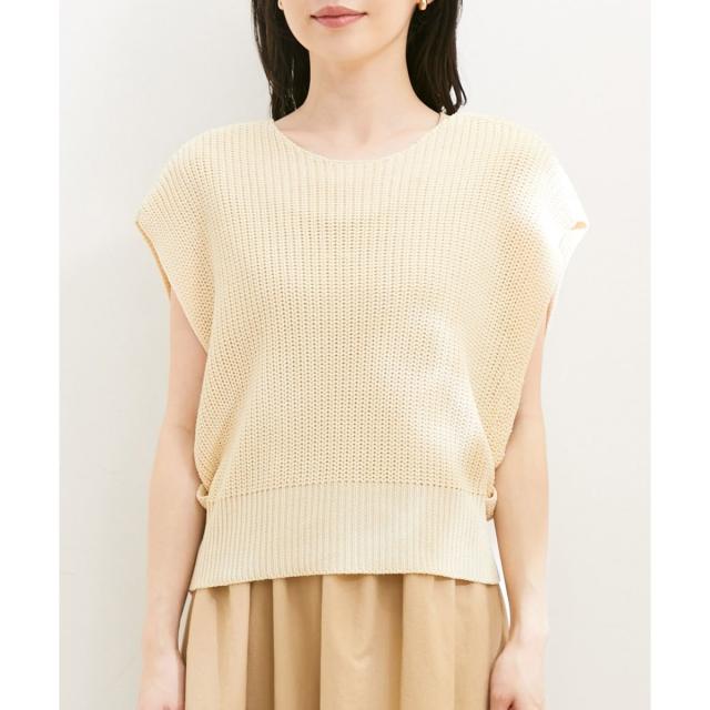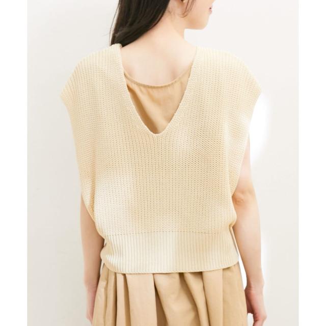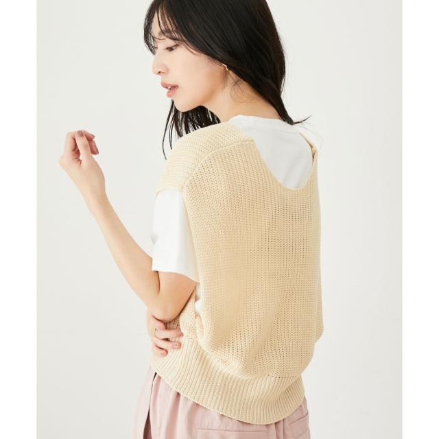 ベストもシャリ感のあるざっくり編みニットにしています。