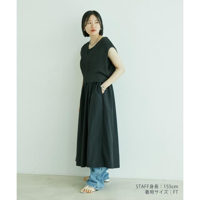 ・ベストとワンピースが微配色になっているところもコーデの幅を利かせられる、高見えポイントになっています。