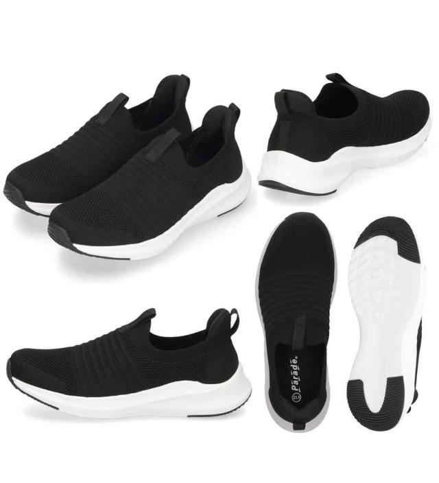 スリッポン スニーカー レディース メンズ スリップイン 履きやすい 柔らかい 軽い 紐なし 屈曲性 歩きやすい 靴 ネイビー ブラック 黒 楽すぽっ Parade 981706