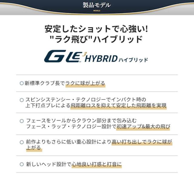 | 対象製品 | G LE3 ドライバー / フェアウェイウッド / ハイブリッド / アイアン / パター | |