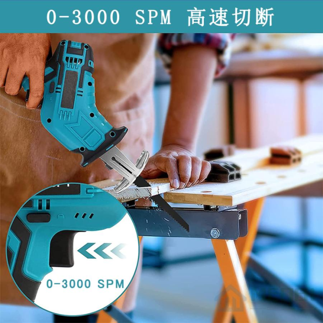 無段階変速、取り回し性と高速ストローク、圧倒的な切断スピードと低振動を備えた充電式レシプロソーです。