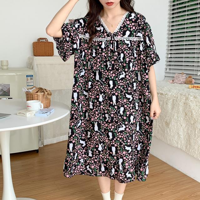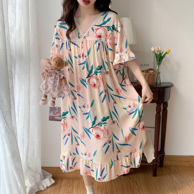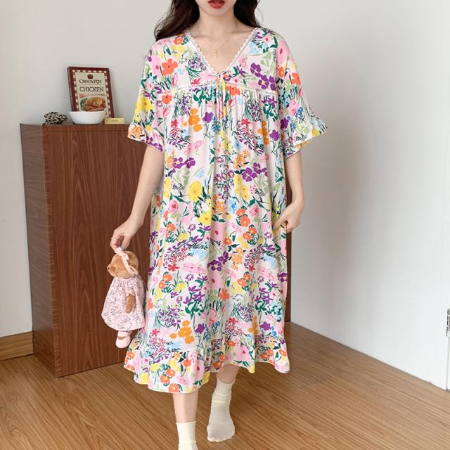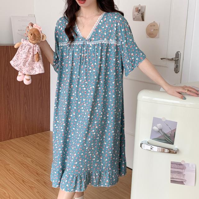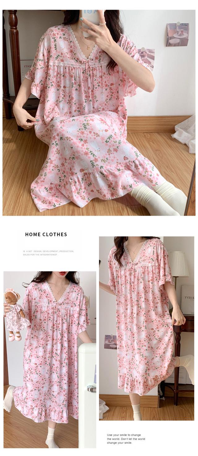 ネグリジェ パジャマ ワンピース レディース 半袖 マキシワンピース 夏 ロング丈 ルームウェア Vネック 大人 部屋着 花柄 可愛い おしゃれ