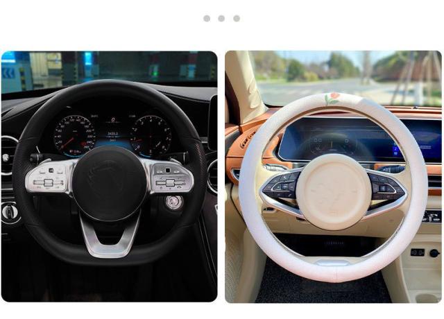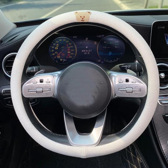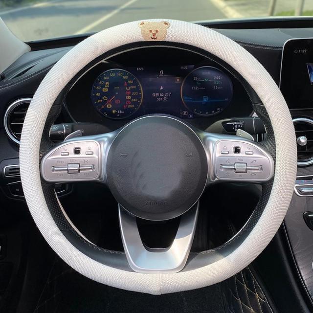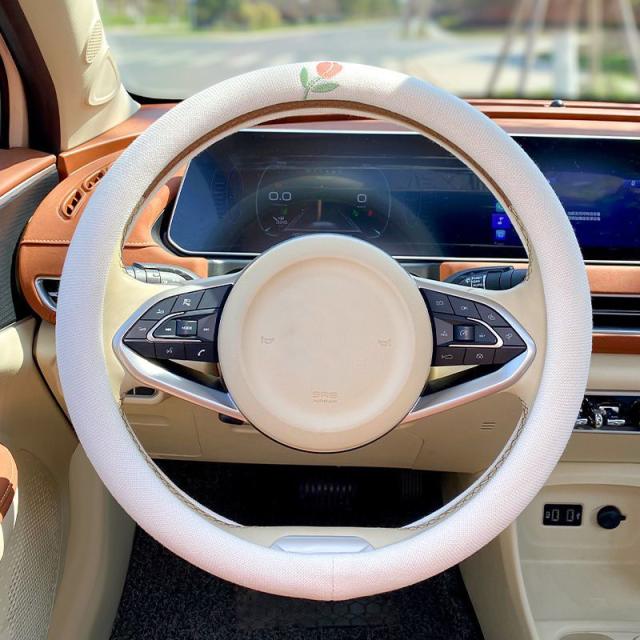 ハンドルカバー ステアリングカバー 綿麻 普通車 軽自動車 D型 円型 38cm 薄手 滑り止め 通気性 刺繍花柄 動物柄 可愛い レディース 車内装 おしゃれ