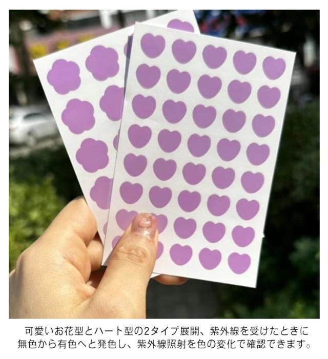 UVステッカー 紫外線シール サンステッカー UVパッチ 紫外線把握 シール UV検出 紫外線検出 パッチ 防水 日焼け止め対策 子供用 大人用 焼け止め用UVステッカー 小花型 ハート型 紫外線検出ステッカー UVラベル