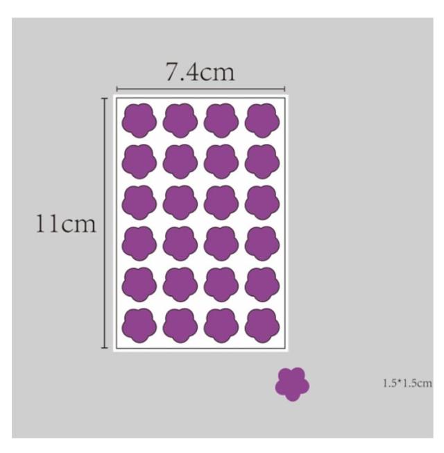 | サイズについての説明 | 花柄 1枚小花24個 花サイズ1.5*1.5cm ハート柄 1枚ハート40個 ハートサイズ1.1*1.1cm |