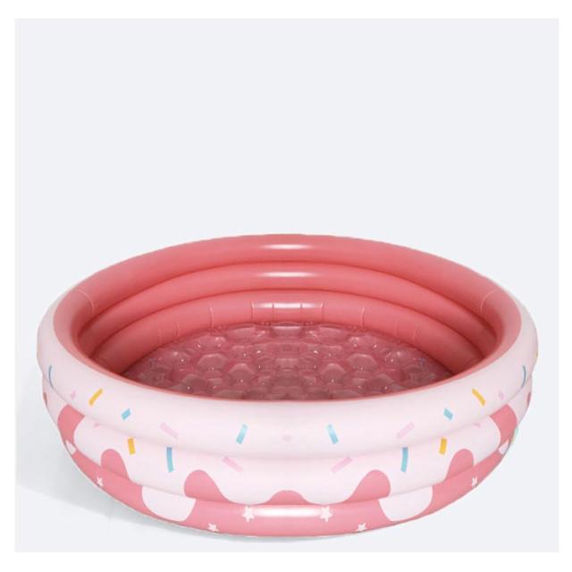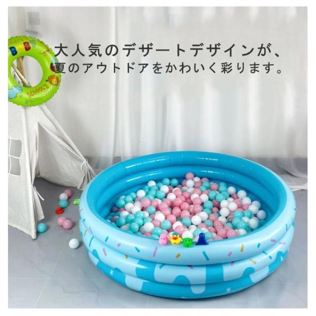 | 日差しの強い夏の日も思いっきり楽しみたいわんぱくキッズにぴったりしたかわいいプール。 大人気のデザートデザインが、夏のアウトドアをかわいく彩ります。 フワフワ床で足が痛くない、中の様子が見えやすい ぽこぽこプールは、底部にも空気が入るエアクッション仕様なので、底つき感を軽減し、固い地面の上でも痛みを感じにくいのが特徴! 底滑りも軽減するので安心してお子さまの水遊びを見守ることができます。 底部にはさらに排水口も付いているので、キャップを開けるだけでどんどんと排水していきます。やっかいなプールの排水も簡単です! 大きすぎず小さすぎないちょうどいいサイズの直径約120×深さ33cm。 お庭だけでなく集合住宅のベランダなどの限られたスペースでも楽しめる、アウトドアの幅が広がるぽこぽこプールです! プールの高さが33cmもあるので、身体全体しっかりと水につかれます。 暑さを感じず、涼しく大型ビニールプールで水遊びすることができます。 | |