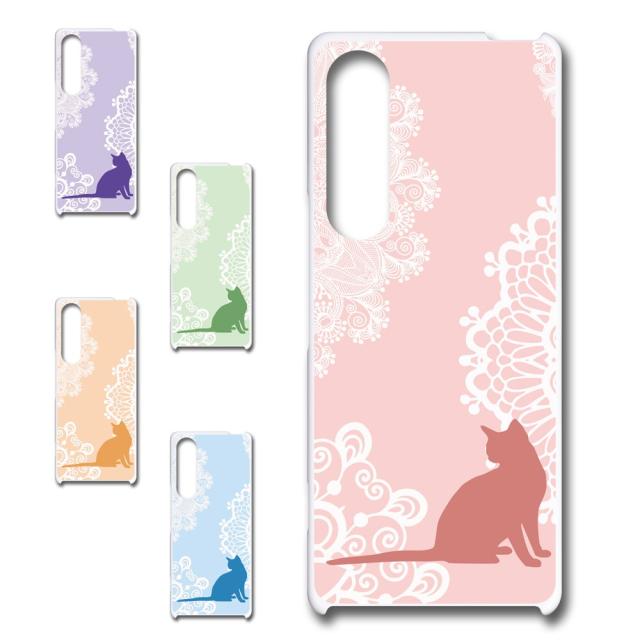 xperia 1v ケース 猫柄 レース かわいい お洒落 猫 ネコ ハードケース 動物柄 sog10 SO-51D A301SO エクスペリア1v スマホケース けーす ハード xperia1vけーす エクスペリア1vケース スマホカバー xperia1v
