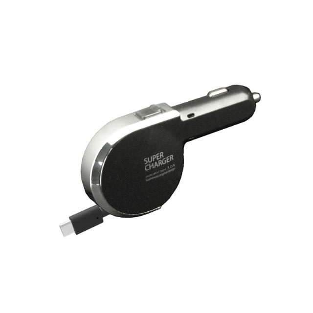 カシムラ DC充電器 リール インジケーター 3A Type-C ブラック 車内充電 DC12V/24V DC5V 3A すっきり収納 DC-012