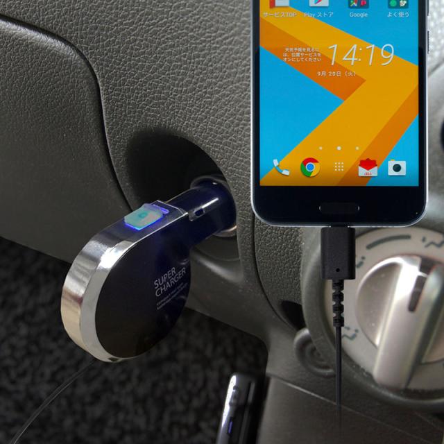 ●車のDCソケット電源からスマートフォンのバッテリーを充電する、USB Type-C端子専用のハイパワーDC充電器。