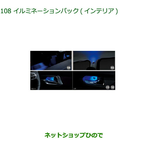 [109]フロアイルミネーション(2モードタイプ)(フロント用)、[110]センターピラーイルミネーション(2モードタイプ)、[112]インナーハンドルイルミネーション(2個セット)との3点セット