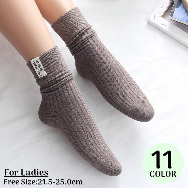 クルーソックス レディース 靴下 くつ下 リブソックス 通気性 吸汗 ロゴ 無地 シンプル おしゃれ 春 夏 秋 冬 フリーサイ