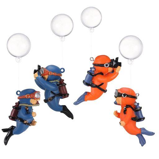 DFSUCCES アクアリウム 水槽 ダイバー 装飾 4点セット 水槽用アクセサリー 風船付き潜水夫 オーナメント 魚のおもちゃ DIY 雰囲気作り 樹脂 安全性 耐久性 (ブルー+オレンジ)