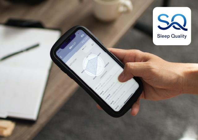 “眠りを見える化”するからといって、センサーを身につけて眠るわけではありません。いつも通り、ベッドに横になる。ただそれだけで、マットレスに内蔵したエアセルセンサーが、心拍数・呼吸数・体動を検知します。このデータは、bluetooth経由でスマートフォンのアプリ「Sleep Quality」に同期するので、毎日起床後に日々の睡眠内容を確認できます。睡眠スコアをデータ化、スマホに届けます