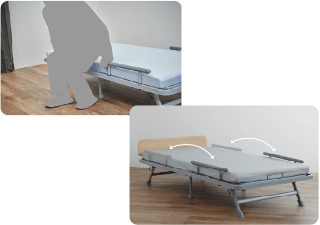 寝返りや立ち上がり、布団のズレを補助するグリップ付きだから、あらゆる世代の人が安心して使用できます。ベッドの設置場所や使用用途に合わせて、グリップの取り付け位置が選べるうえ、取りはずしも工具不要で簡単です。挟み込みに対応 安心へとことん配慮